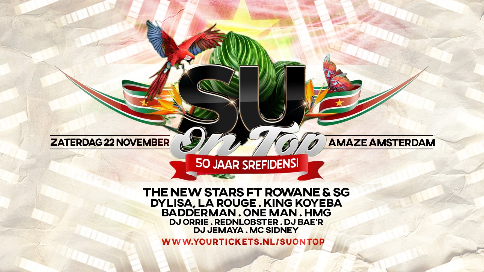 SU ON TOP Het meest luxe & Surinaamse muziekevent ooit! Topartiesten, Luxe beleving, Big Show Energy Een experience vol Surinaamse trots, cultuur & pure vibes. Dit is geen feestje. Dit is geschiedenis in de making Amaze, Amsterdam – de mooiste club van de city Zaterdag 22 november – Srefidensi Special
